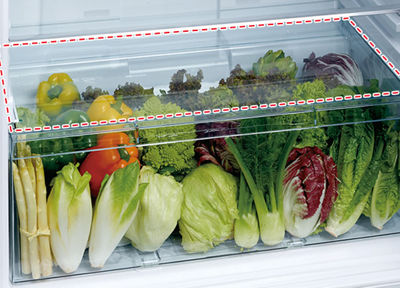 Lớp bảo vệ bên trên ngăn không cho không khí lạnh thổi trực tiếp vào rau quả, giúp duy trì độ ẩm tối ưu bên trong ngăn.